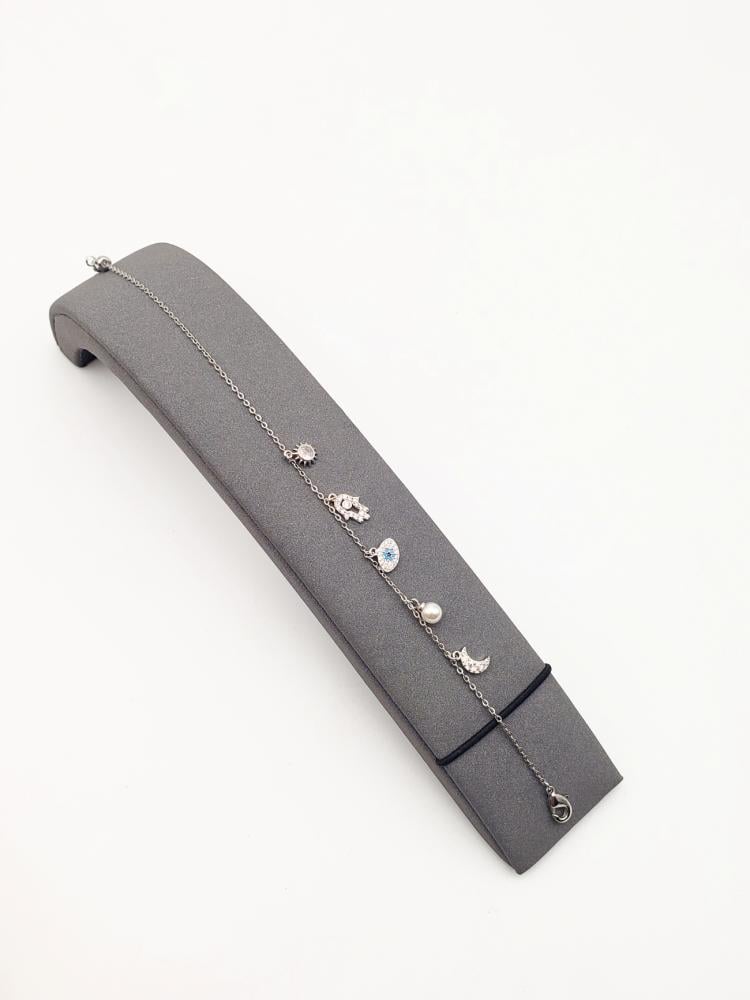 أضيفي لمسة من الأناقة إلى إطلالتك مع هذه السوارة المصممة بإتقان. مصنوعة من الفولاذ المقاوم للصدأ بجودة عالية، مما يضمن لك إطلالة تدوم طويلاً دون القلق من التآكل أو الصدأ. يجمع تصميم هذه السوارة بين البساطة والجاذبية، ليمنحك لمسة من الفخامة والتميز. إنها السوارة المثالية التي تناسب جميع المناسبات وتعكس أسلوبك الفريد، سواء كنتِ تبحثين عن لمسة عصرية أو كلاسيكية. ارتديها بمفردها لإطلالة ناعمة أو قومي بمزجها مع قطع أخرى لإضافة مزيد من التألق إلى معصمك.