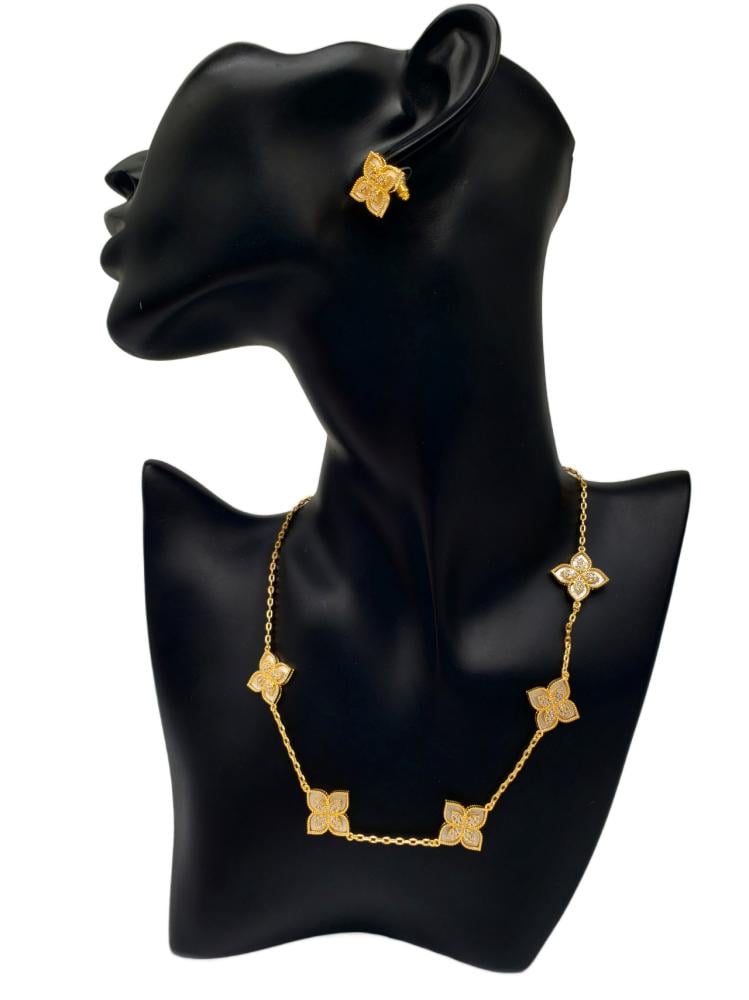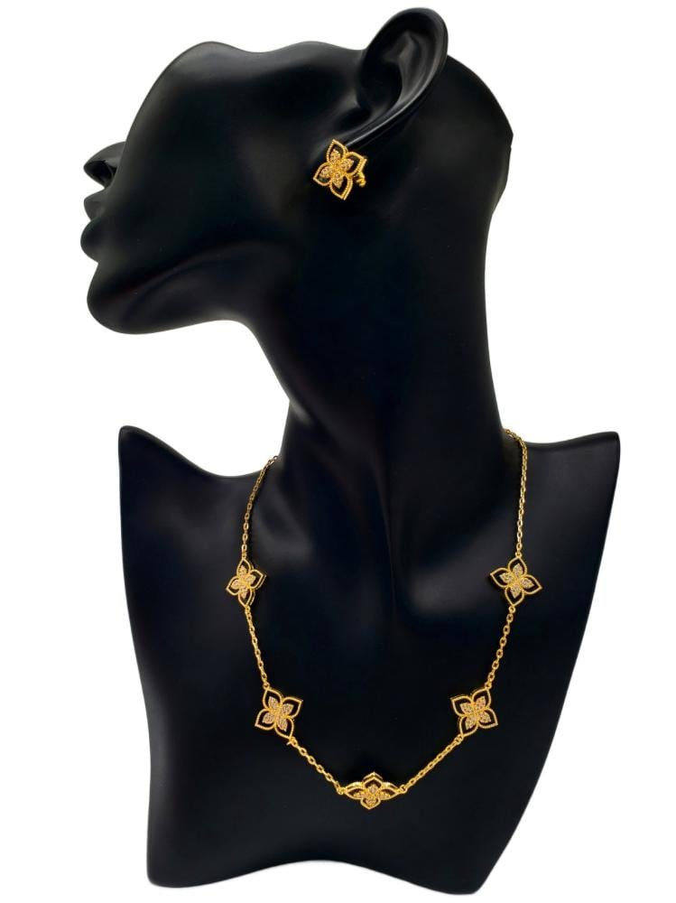 أضيفي لمسة من الأناقة إلى إطلالتك مع مجموعة الحلق والسلسال المصممة بإتقان، المستوحاة من ماركة روبرتو كوين العالمية الشهيرة. مصنوعة من الفولاذ المقاوم للصدأ بجودة عالية، مما يضمن لك إطلالة تدوم طويلاً دون القلق من التآكل أو الصدأ. تجمع هذه المجموعة بين البساطة والجاذبية، لتمنحك لمسة من الفخامة والتميز. إنها المجموعة المثالية التي تناسب جميع المناسبات وتعكس أسلوبك الفريد، سواء كنتِ تبحثين عن لمسة عصرية أو كلاسيكية.