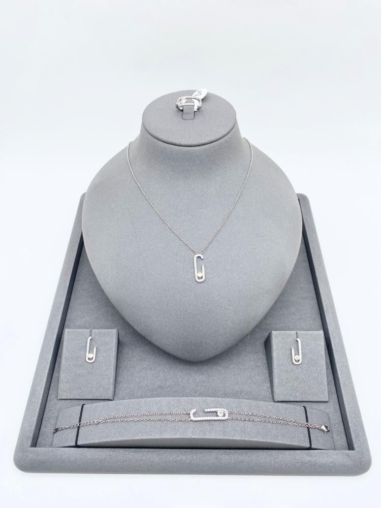 أضيفي لمسة من الأناقة إلى إطلالتك مع هذا الطقم المكونة من 4 قطع السلسال، الحلق، السوارة، والخاتم، المصممة بإتقان والمستوحاة من ماركة ميسيكا العالمية الشهيرة. مصنوعة من الفولاذ المقاوم للصدأ بجودة عالية، مما يضمن لك إطلالة تدوم طويلاً دون القلق من التآكل أو الصدأ. تجمع هذه المجموعة بين البساطة والجاذبية، لتمنحك لمسة من الفخامة والتميز. إنها المجموعة المثالية التي تناسب جميع المناسبات وتعكس أسلوبك الفريد، سواء كنتِ تبحثين عن لمسة عصرية أو كلاسيكية.