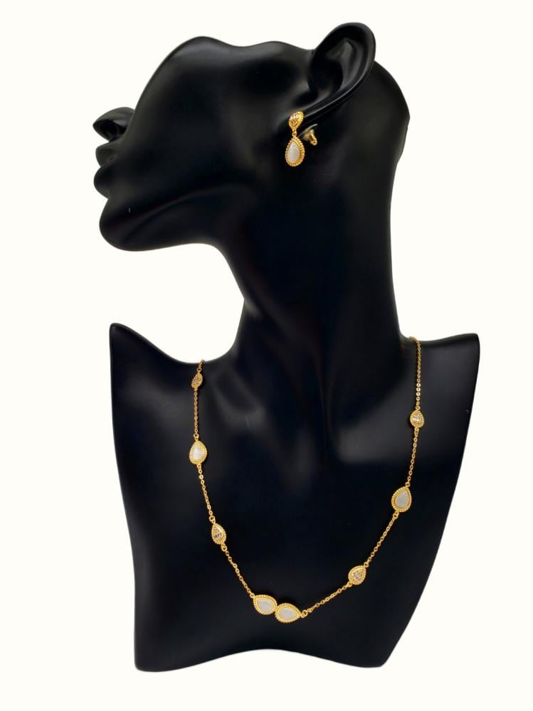 أضيفي لمسة من الأناقة إلى إطلالتك مع مجموعة الحلق والسلسال المصممة بإتقان والمستوحى من ماركة بوشرون، مصنوعة من الفولاذ المقاوم للصدأ بجودة عالية، مما يضمن لك إطلالة تدوم طويلاً دون القلق من التآكل أو الصدأ. تجمع هذه المجموعة بين البساطة والجاذبية، لتمنحك لمسة من الفخامة والتميز. إنها المجموعة المثالية التي تناسب جميع المناسبات وتعكس أسلوبك الفريد، سواء كنتِ تبحثين عن لمسة عصرية أو كلاسيكية.